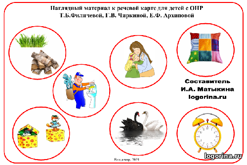 Предлагаемый материал поможет провести качественную и количественную диагностику детей с ОНР. Речевая карта составлена для 5-6 и 6-7 лет, однако ее можно использовать и для детей четырех лет, учитывая особенности этого возраста. Кроме предложенного наглядного материала, можно использовать "Альбом логопеда" О.Б. Иншаковой. Речевая карта для обследования детей с ОНР (Т.Б. Филичева, Г.В. Чиркина) Наглядный материал к речевой карте Т.Б. Филичевой, Г.В. Чиркиной (сост. И.А. Матыкина) |